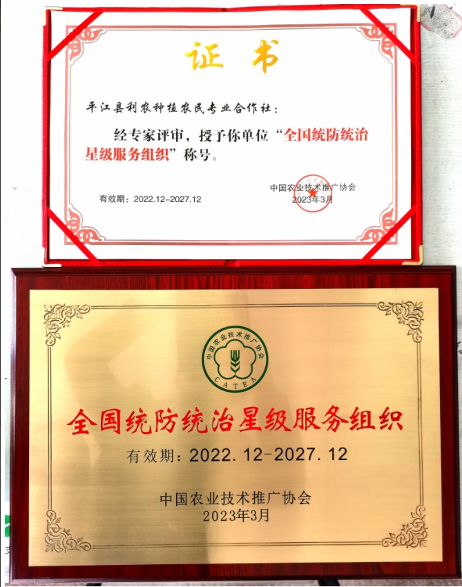 近日,中国农业技术推广协会公布了“第三批全国统防统治星级服务组织”名单,我县“平江县利农种植农民专业合作社”榜上有名!这是我县农业农村工作植保领域继“全国农作物病虫害统防统治百强县”“全国农作物病虫害绿色防控整建制推进县”后,又获评的一个全国性称号。