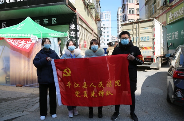 在抗击疫情的前线上,平江法院“一盘棋”,上下“一条心”,党员干警尽锐出战,充分发挥先锋模范作用,以初心与使命构筑了疫情群防群治的严密防线。(胡艳兰)