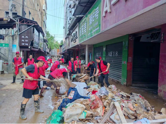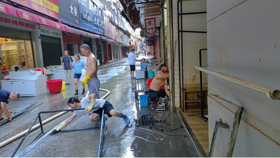 昔日的毛家巷人来人往、热闹非凡,昔日的供销市场商铺林立、摊贩云集,洪涝过后都已是面目全非、满目疮痍,污水横流、淤泥杂物遍地。为做好汛后生产生活恢复工作,县供销系统迅速行动,全力以赴,组织全系统力量到毛家巷开展汛后恢复重建工作。三人一队、两人一组,你搬我抬、挥铲拉车,清理淤泥、扫除垃圾,帮助商户搬运杂物、清洁店面,用汗水“洗涮”被洪水淹没后的街道。为了让商户尽快恢复经营,县供销合作联社紧急协调对接电力部门,修复变压器及电力设备,在最短时间内为商户恢复了电力供应。
