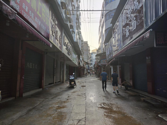 7月6日,毛家巷两旁的部分商户们已经开始清洗地面、擦拭货架;有的商户已经开始陈列商品,笑容又重新爬到脸上;巷口的李宁安踏门店、供销市场楼上的万兴佳艺超市都已经清洁完毕,筹备着第二天恢复正常营业……傍晚,落日的余晖从毛家巷口上边的天空洒落,照耀在清洁干净的巷子里,那熟悉的吆喝声、“烟火气”很快就回来了!