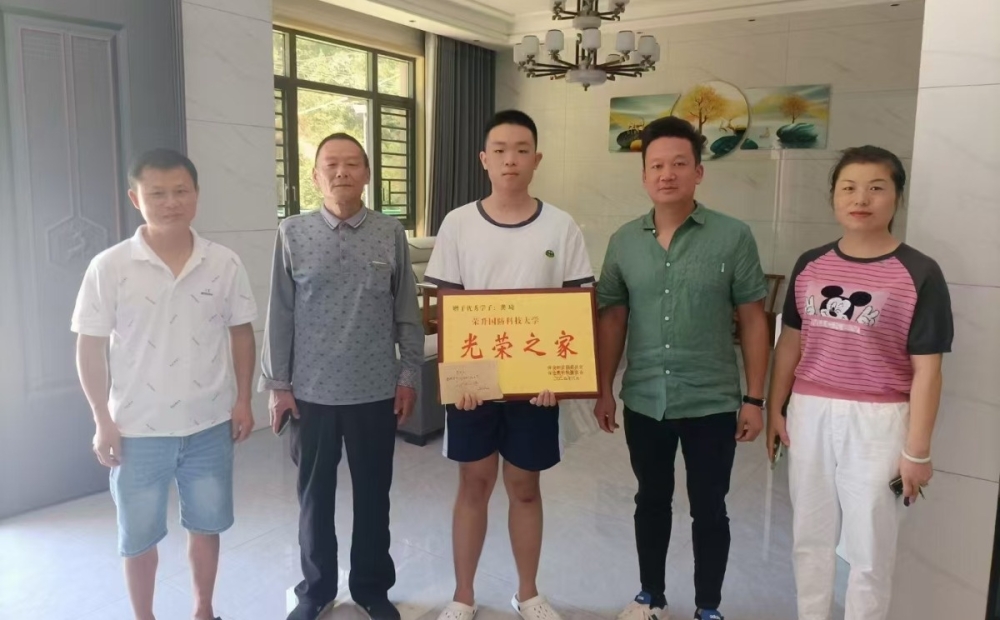 第一站,他们前往邓家组的龚琦家中,今年高考,他以优异的成绩考入国防科技大学,一时间这一喜讯在村内传开,街坊四邻都纷纷前往祝贺。村支委工作人员到达龚琦家时,大家正围着他笑得合不拢嘴。