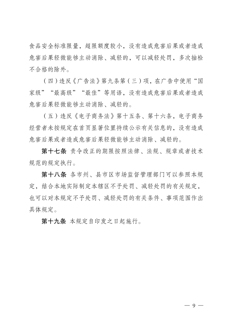 湖南省市场监督管理局关于印发《湖南省市场监督管理领域轻微违法行为不予处罚、减轻处罚规定》的通知