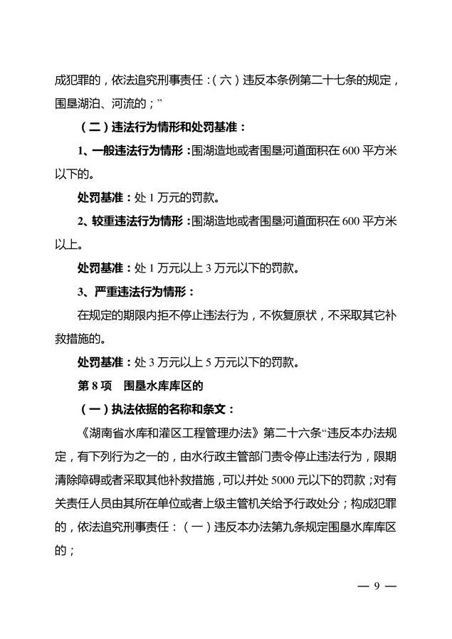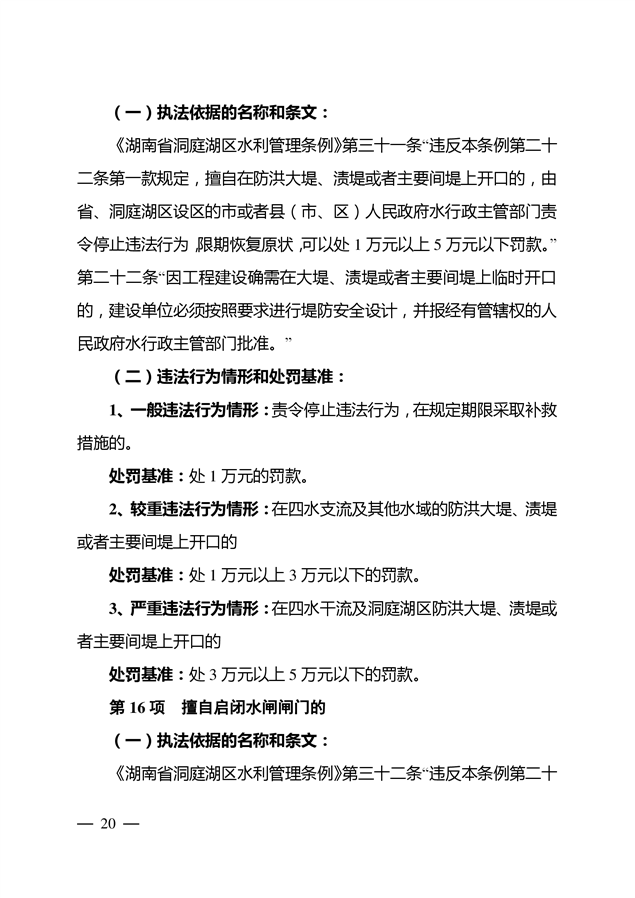 2022年湖南省水利厅行政处罚自由裁量权基准