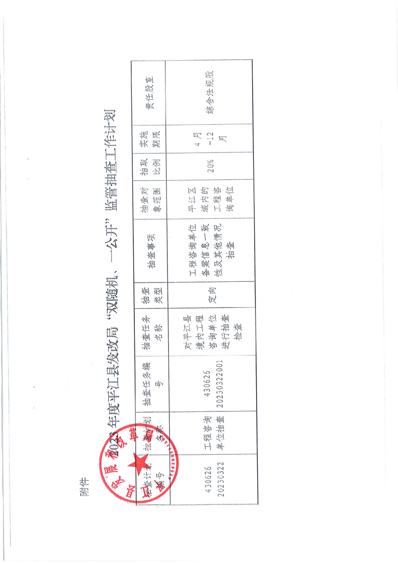 2023年度平江县发改局“双随机、一公开”监管抽查工作计划
