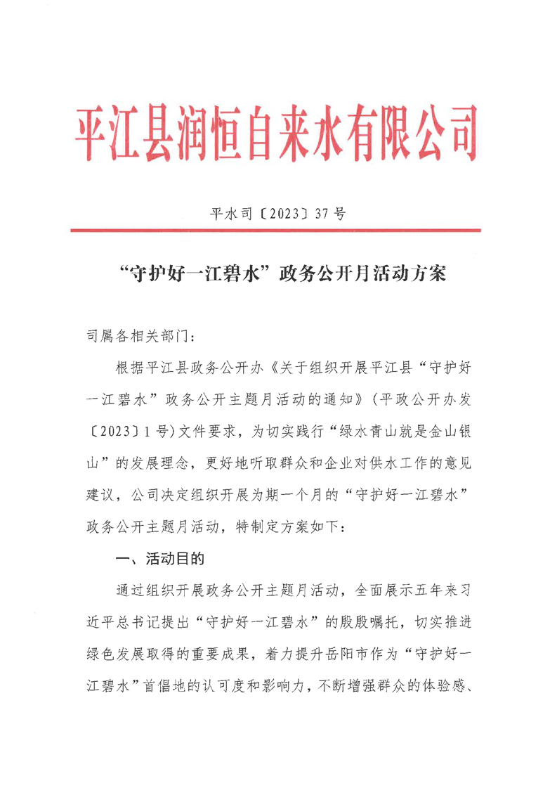 县润恒自来水有限公司关于组织开展“守护好一江碧水”华体会百度 月活动方案