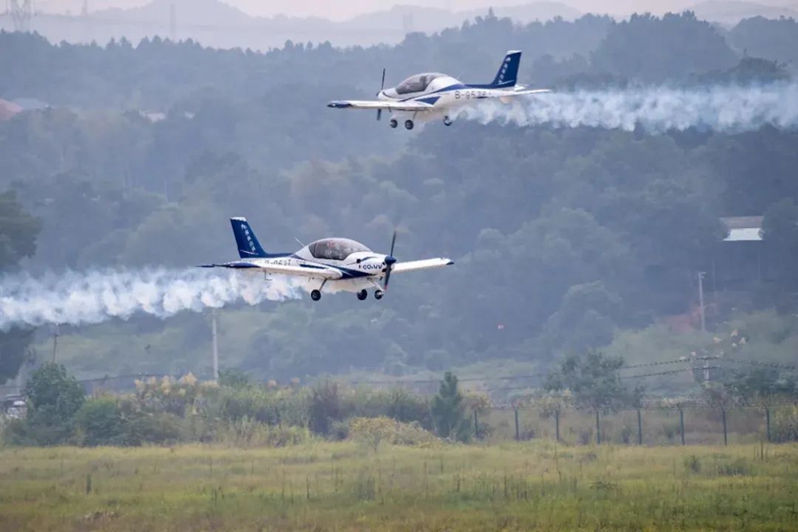 株洲芦淞机场,湖南山河飞行表演队现场特技飞行表演。
