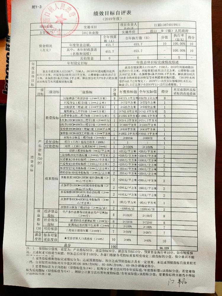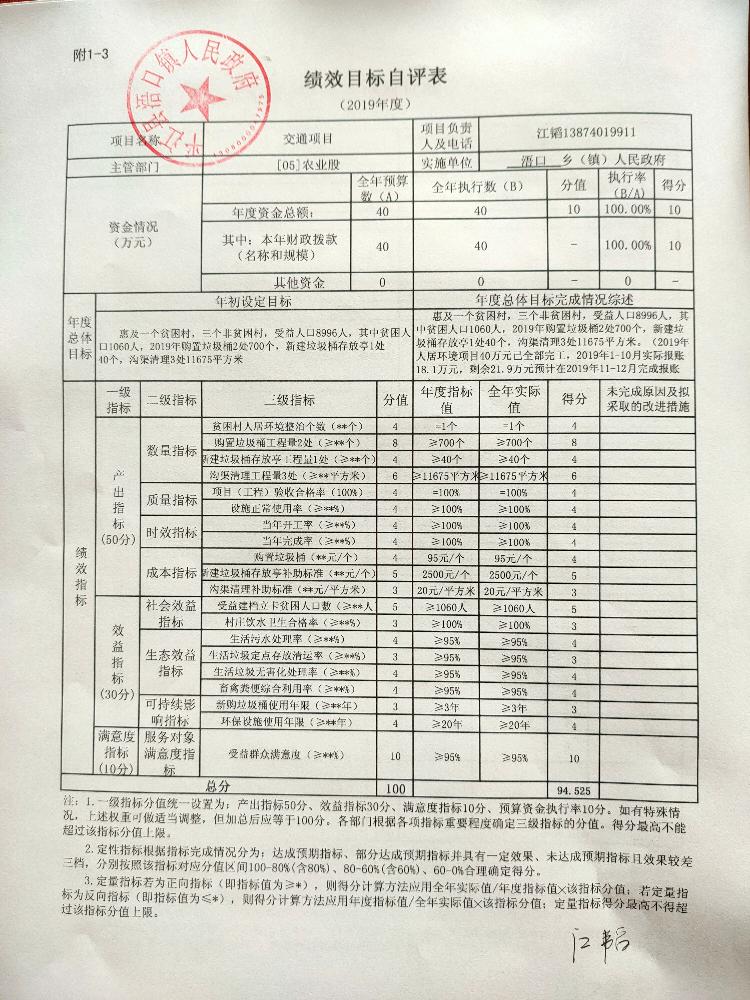 浯口镇2019年度统筹整合涉农资金项目库预算绩效自评表