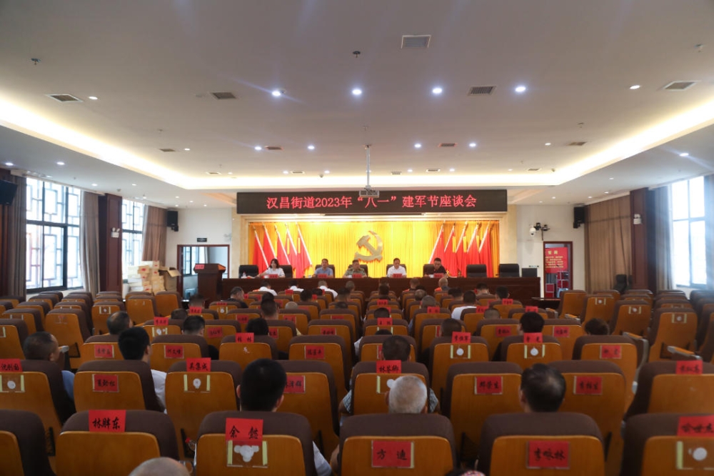 "向前向前向前……",为庆祝中国人民解放军建军96周年,进一步弘扬拥军优属的优良传统,不断营造尊崇军人、尊重退役军人的浓厚社会氛围。7月31日,汉昌街道组织召开"八一"建军节座谈会议,全体机关在职退役军人、部分退休退役老同志以及受县级表彰的先进退役军人代表共计80余人参加座谈,县人武部党委书记、政委郭兴义,县退役军人事务局党组书记、局长唐杏桂,汉昌街道党工委书记张创国出席并讲话,会议由街道党工委委员、人武部长向江南主持。