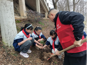 活动中,党员志愿者与学校师生分工协作,以多个小组的形式开展植树行动。他们挥动着手中的小铁锹,按照计划好的合适间距挖松土壤,刨出一个个能容纳小树苗的土坑,然后将小树苗放入其间、覆盖土壤,稍稍压实,再一一浇水。经过一个多小时的辛勤劳动,大家共同种下了数十棵树苗。学生们用稚嫩的小手擦拭额头上沁出的微微汗水,看着自己亲自栽种下的一抹抹新绿,脸上透出了满满的成就感。
