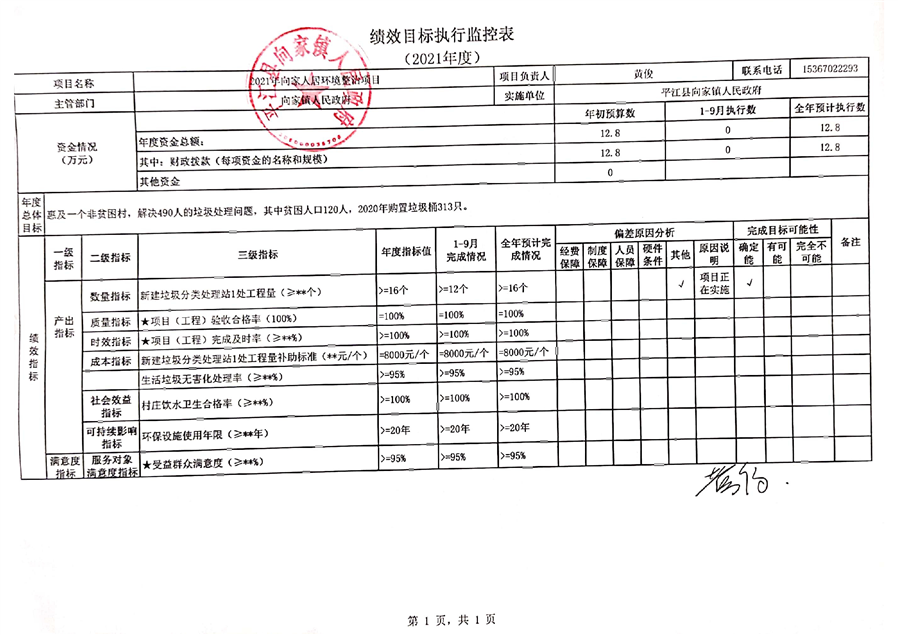 向家镇2021年统筹整合涉农资金项目建设绩效监控表
