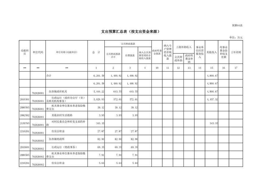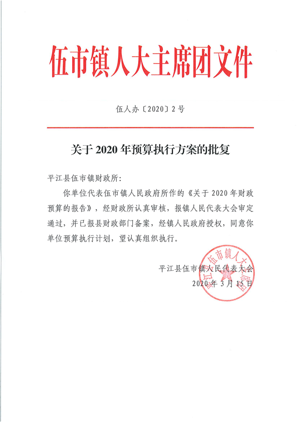 平江县伍市镇人民政府2020年度部门预算编报说明