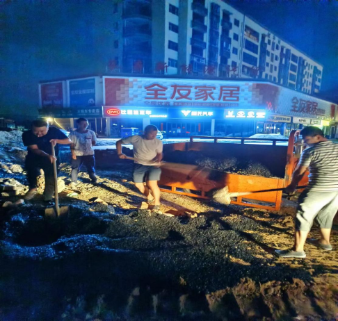 他立马联系了两辆三轮车,同时在付坪村支部微信群中发出召集志愿者的消息,消息一经发出,立刻得到响应。十五分钟后,近十名党员志愿者都带上工具驱车来到长寿大道装沥青。尽管天气炎热,当时已是晚上十点,近十名党员志愿者你一铲,我一铲,很快将沥青装好了车并运至将付坪学校,将沙田、沙龙境内道路的六个裂缝修补好。活动结束已经是晚上十二点。破损的路面修复后,群众的出行安全也得到了保障,大家赞不绝口。
