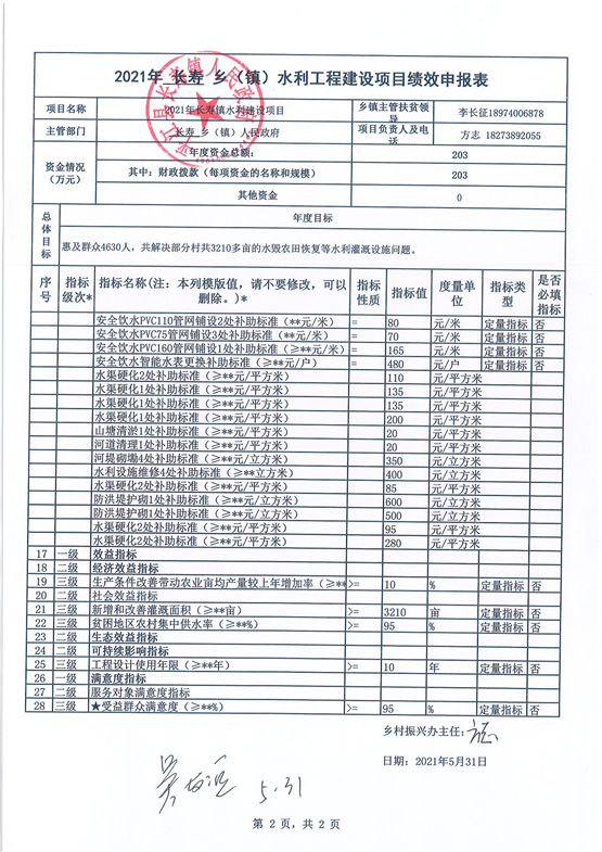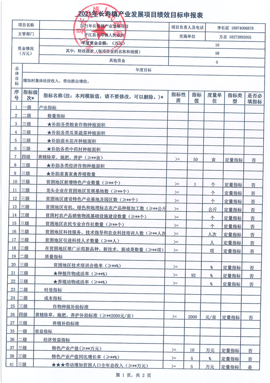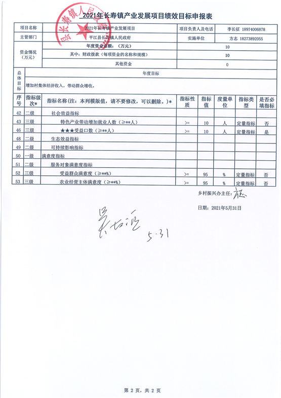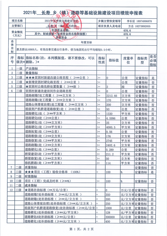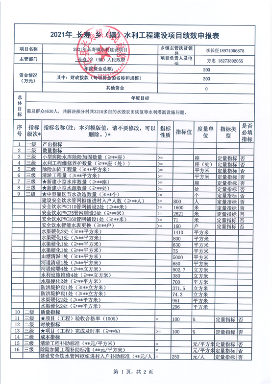 2021年长寿镇乡村振兴统筹整合项目资金绩效申报公示