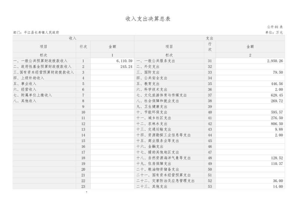 2024年湖南省岳阳市平江县长寿镇人民政府部门决算公开