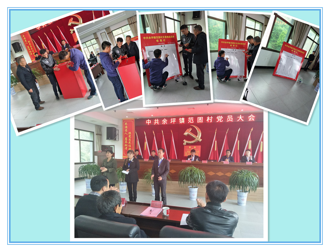 大会在庄严的国歌声中拉开帷幕,严格按程序有条不紊进行:举行开幕式—通过大会议程—上届党支部委员会作工作报告—分组讨论—通过选举办法—通过唱、监、计票工作人员名单—宣读候选人预备人选产生情况和候选人简历—竞职演讲—大会选举—宣布大会选举结果—新一届支部委员会第一次全体会议选举支部书记、副书记—宣布委员会选举结果—通过大会工作报告—新一届委员会与全体党员见面—新当选支部书记作表态发言—举行闭幕式。经过大会和委员会民主选举,成功产生了由3名同志组成的范固村新一届支部委员会。