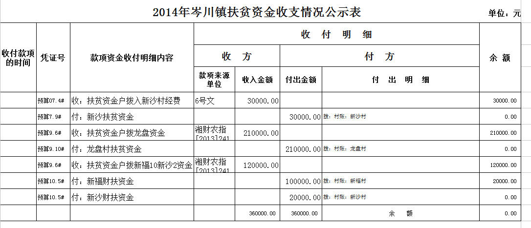 2014年,岑川镇财政扶贫资金36万已全额下拨。