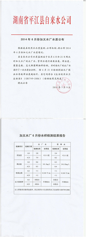 6月份加义水厂水质公布