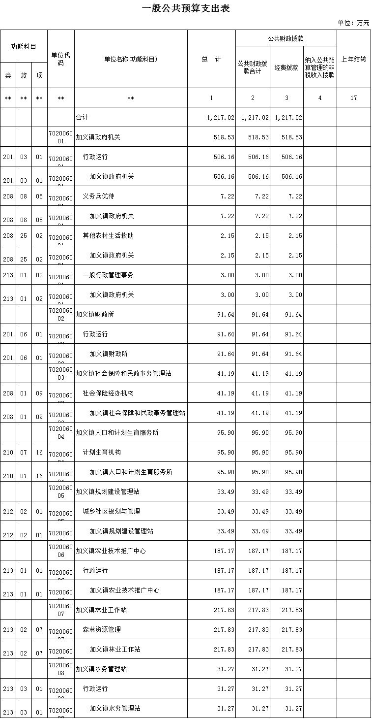其中:机关50.67万元;财政所13.74万元;人口和计划生育服务所18.82万元;农业技术推广中心30.2万元;水务管理站5.11万;林业工作站34.1万元;规划建设管理站5.4万元;民政事务管理所6.49万元。