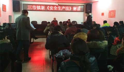 为依法加强安全生产工作,提高全镇干部职工对安全法律的认识,2月2日上午,三市镇特邀县安监局法规室主任喻国风举办讲座,组织全体镇村干部集中学习新《中华人民共和国安全生产法》。