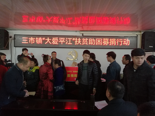 “大爱平江”扶贫助困慈善行动自开展以来,三市镇党委、政府迅速传达会议精神,认真开展宣传动员,组织干部积极参与募捐活动。