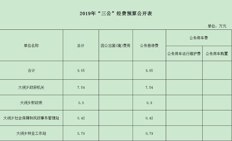大洲乡2019年“三公”经费预算公开