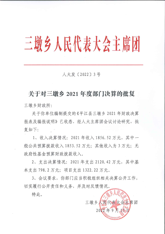 2021年度三墩乡人民政府部门决算公开说明和绩效目标评价