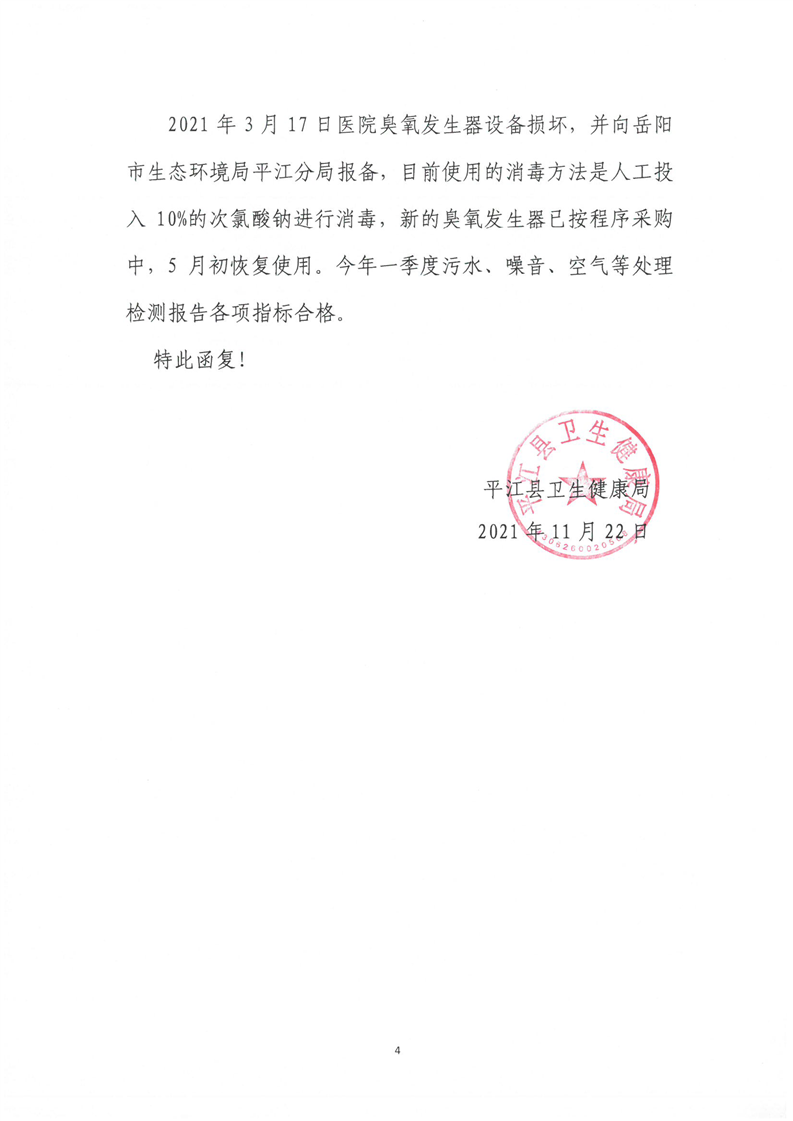县卫健局关于中央生态环境保护督察信访举报督办函的回复函