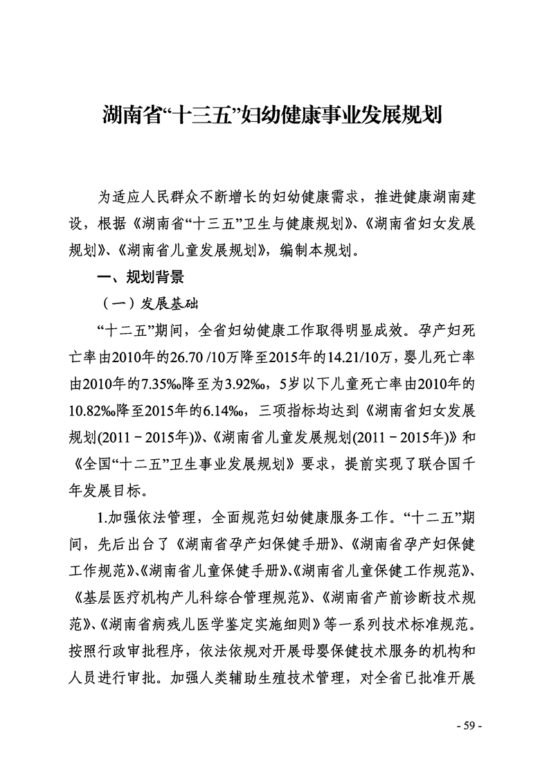 湖南省卫生计生“十三五”规划