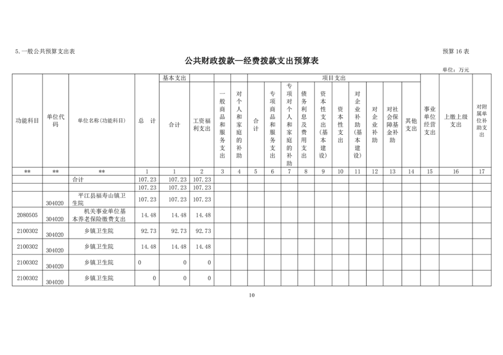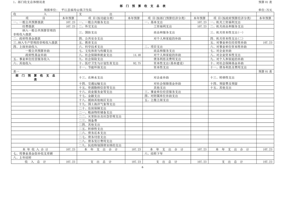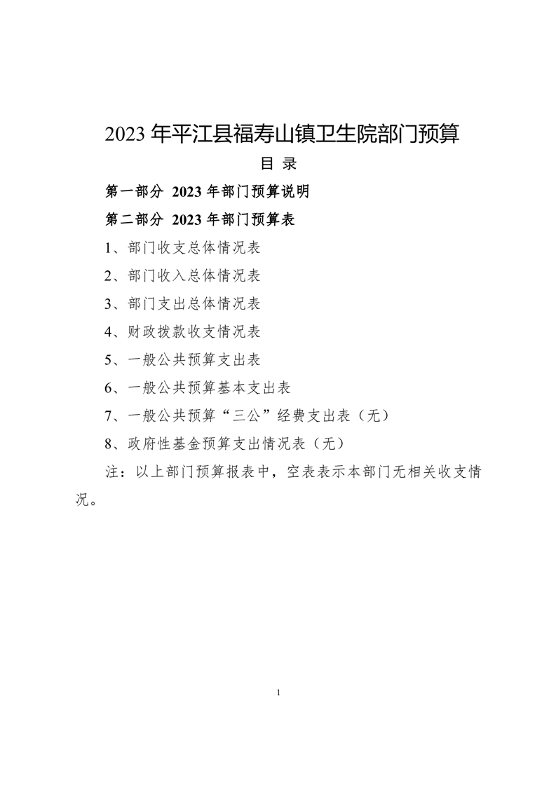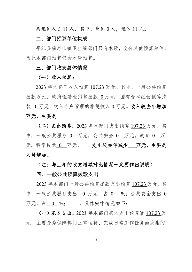 福寿山镇卫生院2023年预算公开