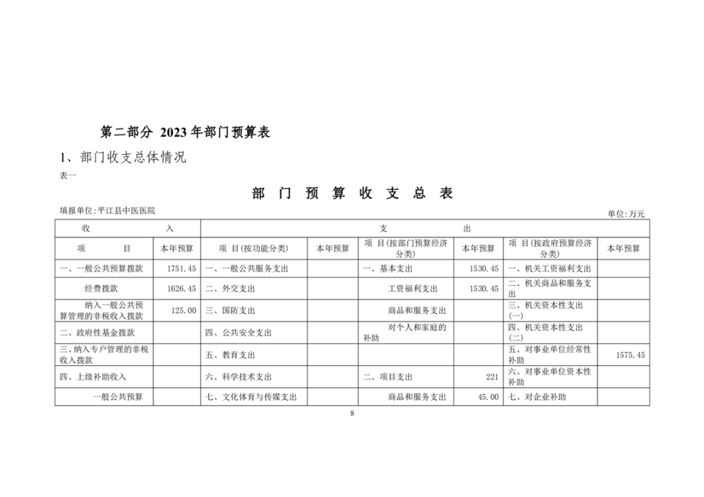 平江县妇幼保健院2023年预算公开