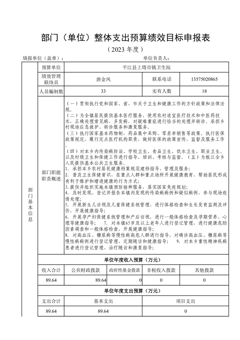平江县上塔市镇卫生院2023年部门预算公开说明