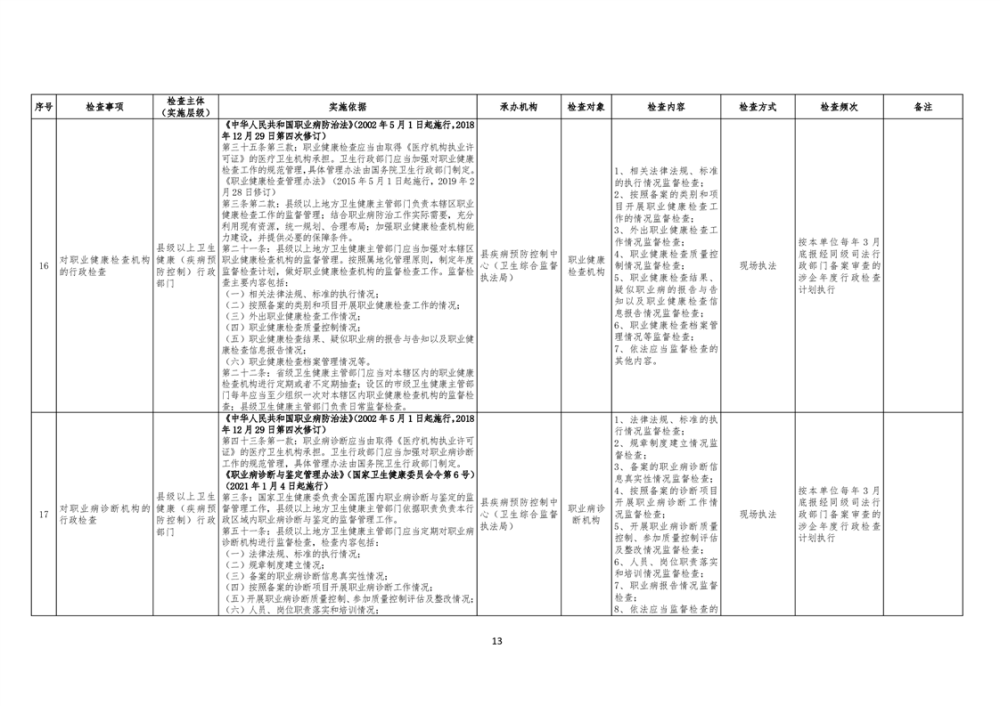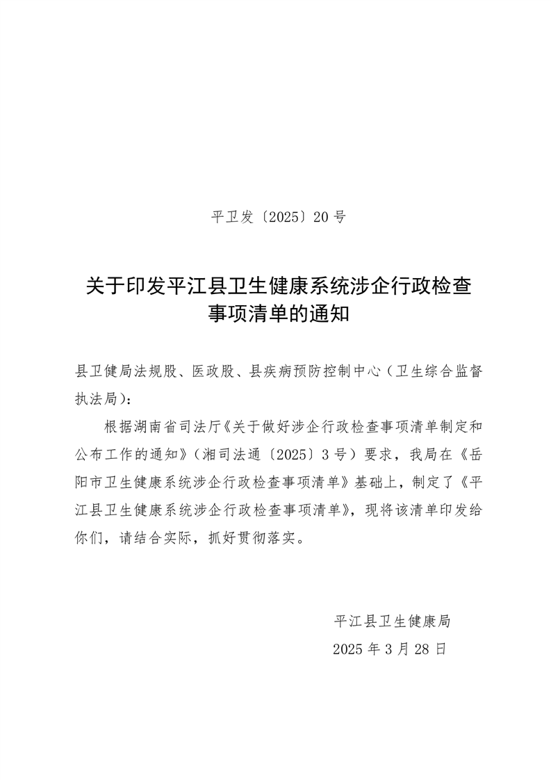 平江县卫生健康系统涉企行政检查事项清单的通知
