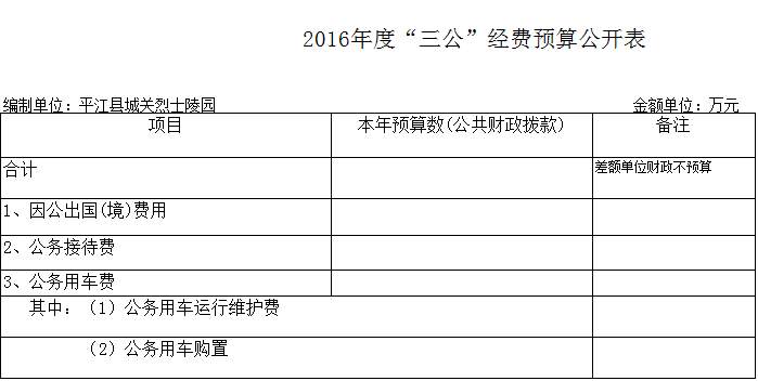 平江县城关陵园2016年部门预算