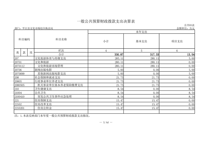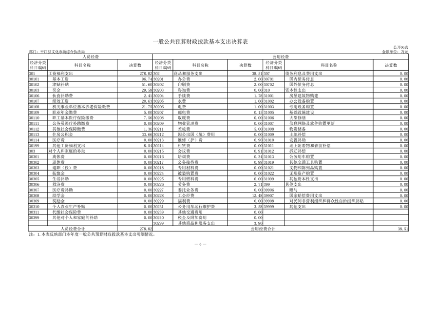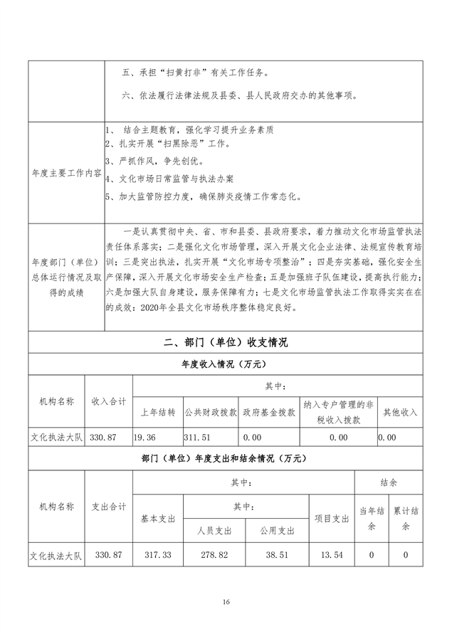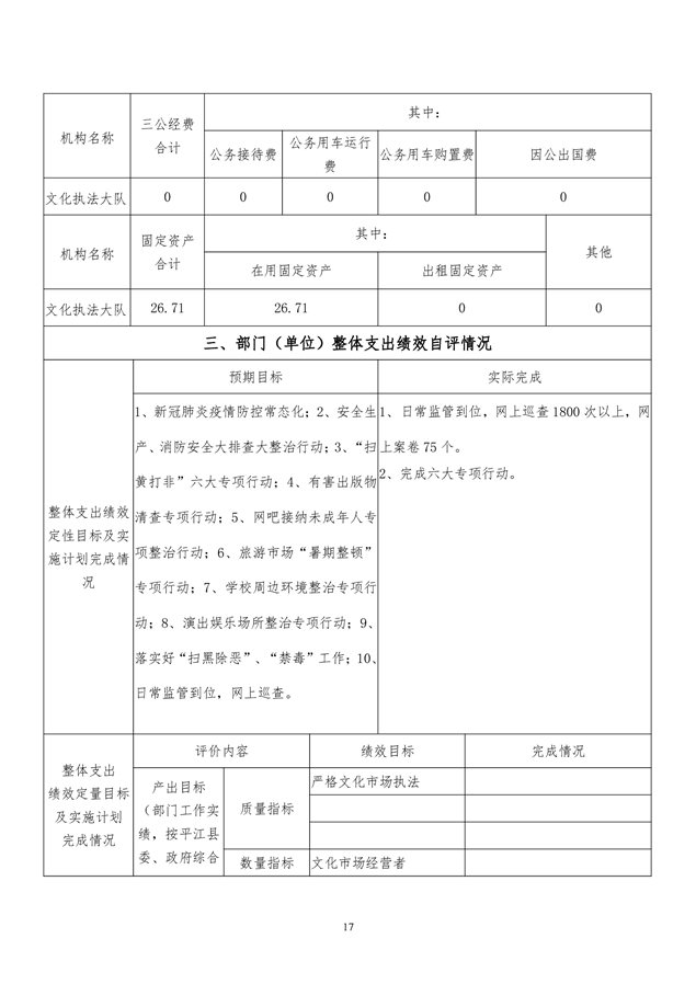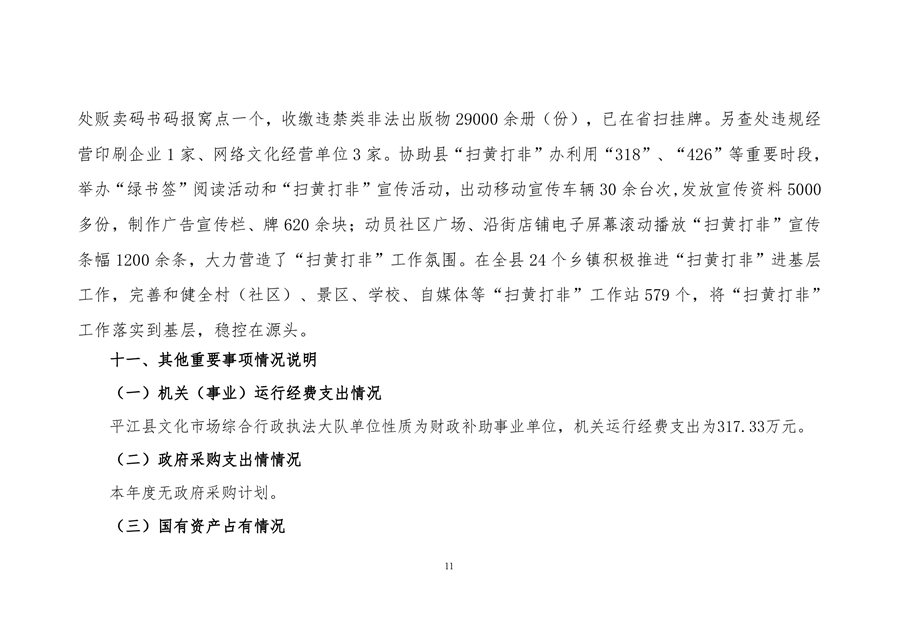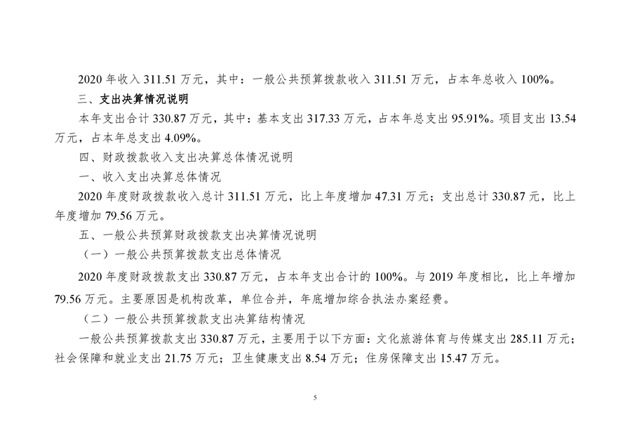 2020年平江县文化市场综合行政执法大队决算编报说明