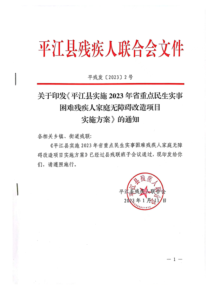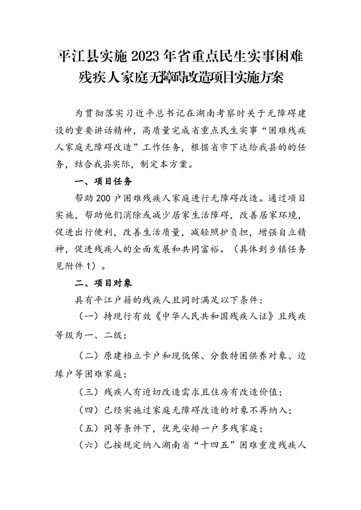 平江县实施2023年省重点民生实事困难残疾人家庭无障碍改造项目实施方案
