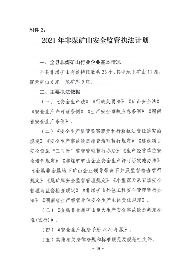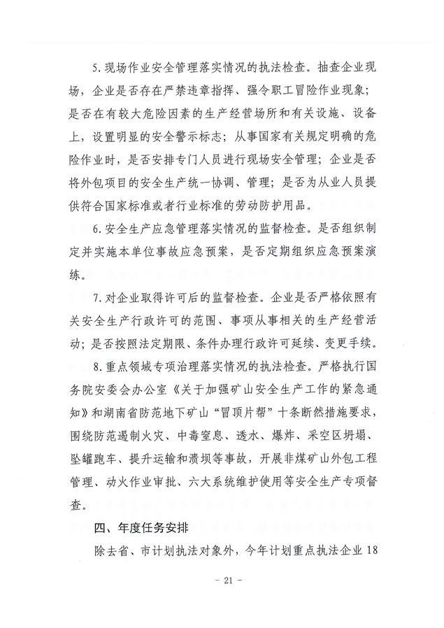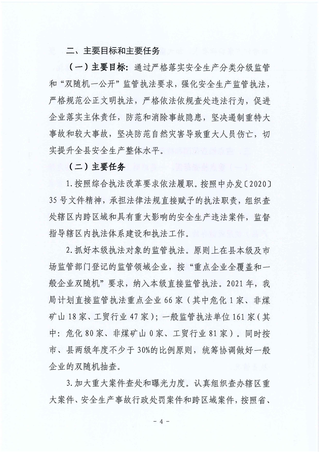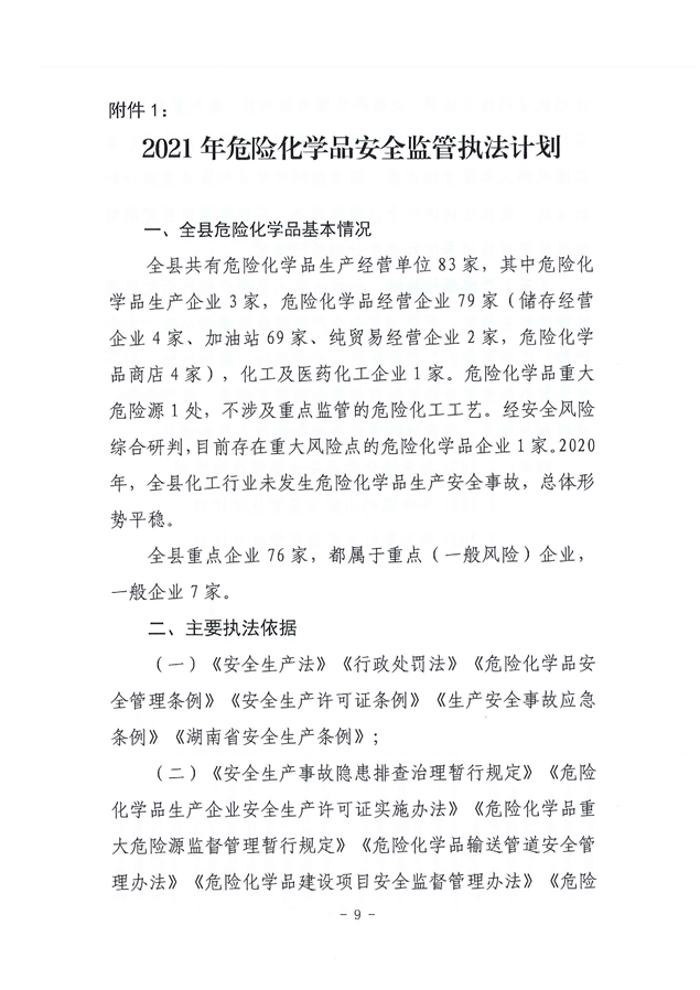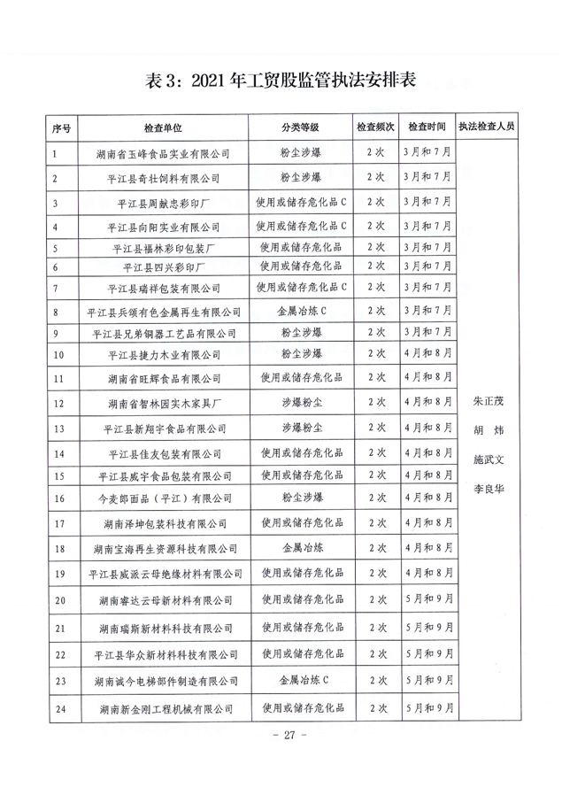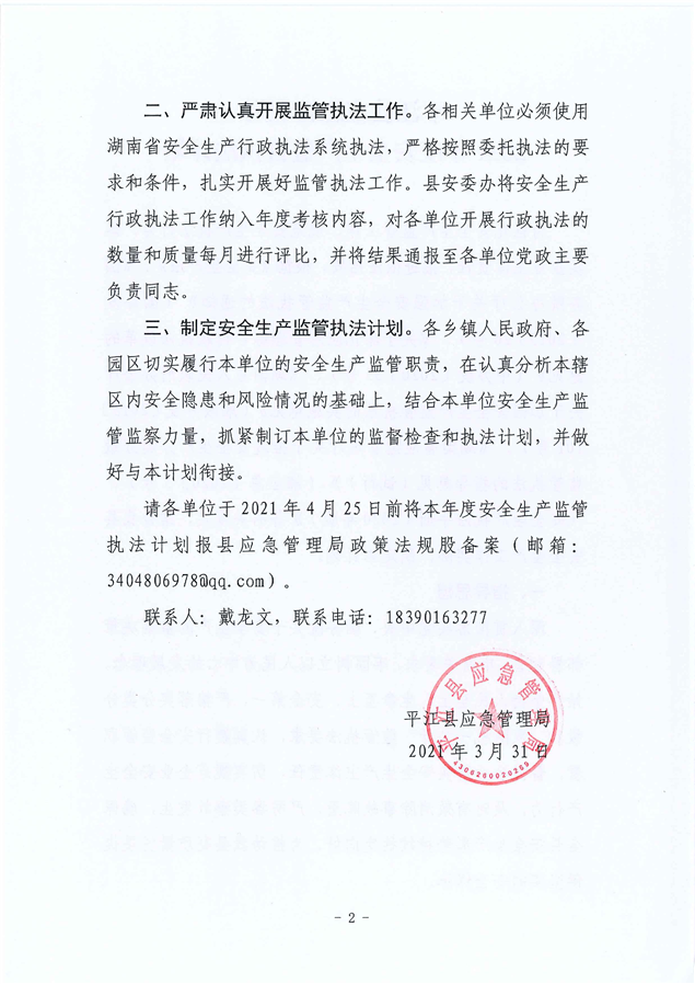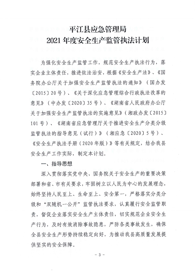 关于印发《平江县应急管理局2021年度安全生产监管执法计划》的通知