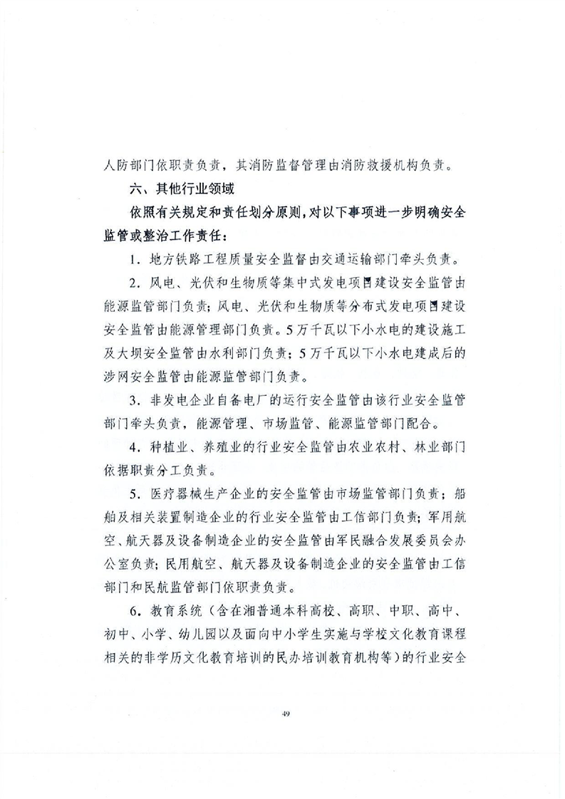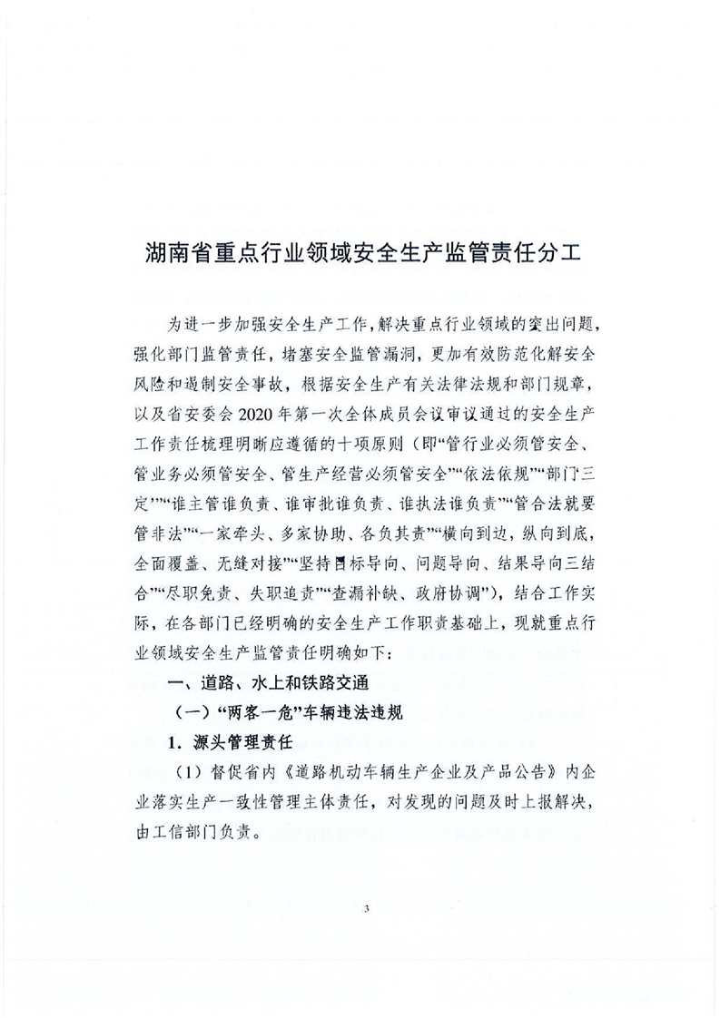 【平安委〔2020〕11号】转发省安委会关于印发《湖南省重点行业领域安全生产监管责任分工》的通知