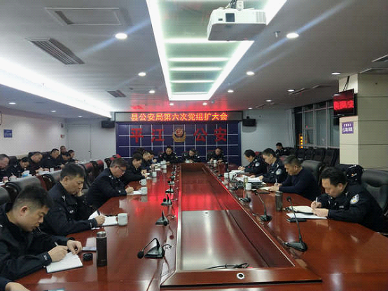 近日,平江县公安局在局机关11楼会议室召开第六次党组扩大会,副县长、县公安局长姜伟南、政委刘勇、副局长江武、副局长李会章出席,平江县局相关单位负责同志以及扫黑办全体民警参加了本次会议。