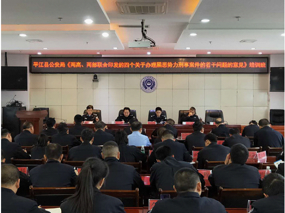 近期,县公安局在局机关二楼会议室组织举办《两高、两部联合印发的四个关于办理黑恶势力刑事案件若干问题的意见》培训班,各机关室所队双主职及一名民警参会,副县长、公安局长姜伟南,政委刘勇,副局长江武出席会议。