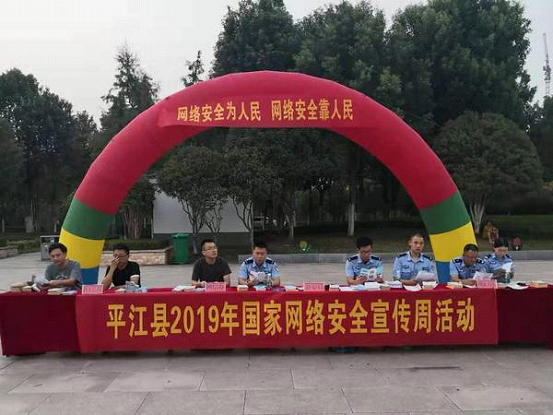 2019年国家网络安全宣传周主题为“网络安全为人民,网络安全靠人民”。活动现场,工作人员通过播放网络安全动漫小视频、摆放网络安全宣传栏、发放2019年国家网络安全宣传周宣传折页、海报、书签等相关资料,及时向群众解释说明各项关键及要点,力求让该活动深入彻底的开展。工作人员还通过天岳广场电子屏播放了平江县2019年网络违法典型案例通报视频和网络安全公益广告,现场设置咨询台,向过往市民宣讲网络安全相关政策法规,并发放宣传折页、海报、书签约5000余份。