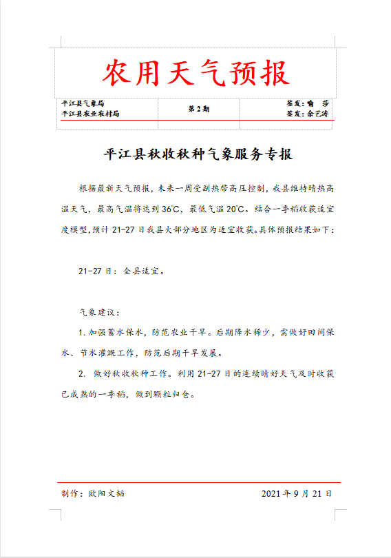 秋收秋种气象服务专报2021年第2期