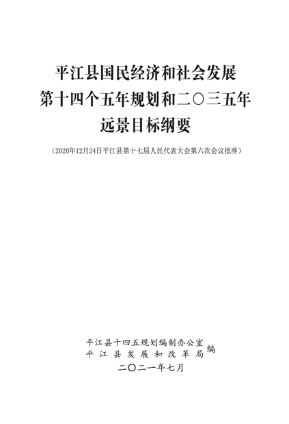 平江县国民经济和社会发展第十四个五年规划和二〇三五年远景目标纲要