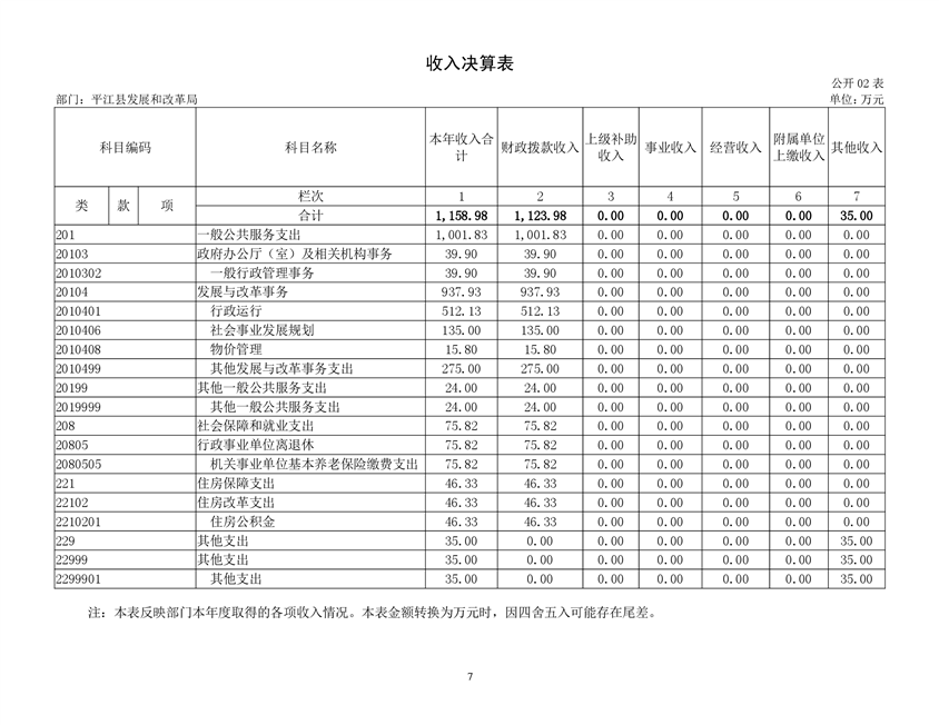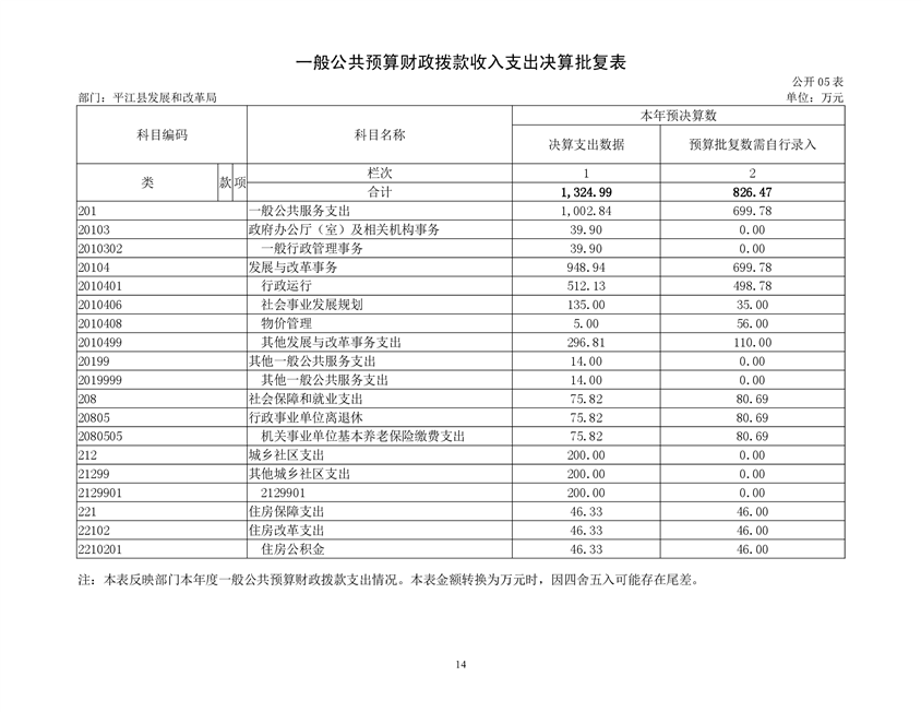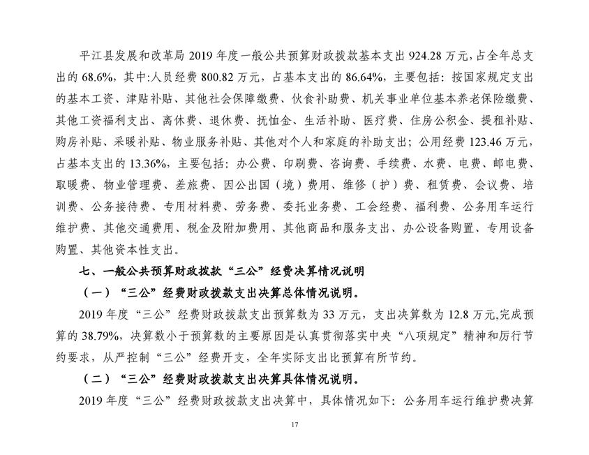 平江县发展和改革局2019年部门决算