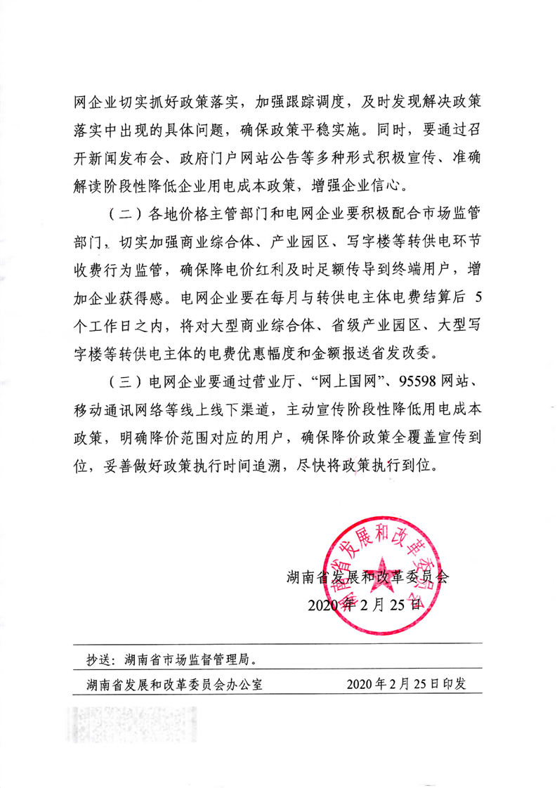 湖南省发展和改革委员会关于阶段性降低企业用电成本支持企业复工复产的通知