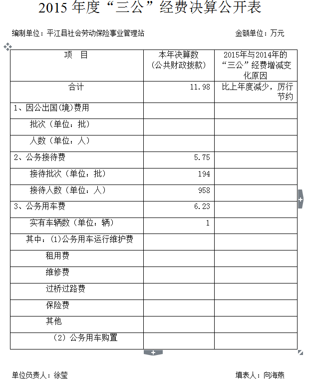 平江县社保站2015年三公经费决算公开表