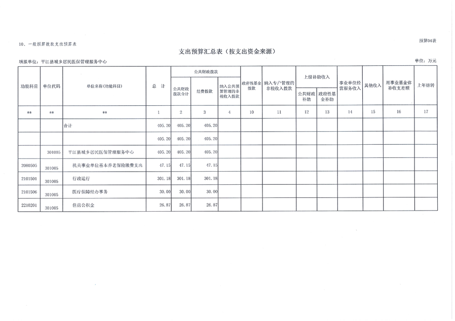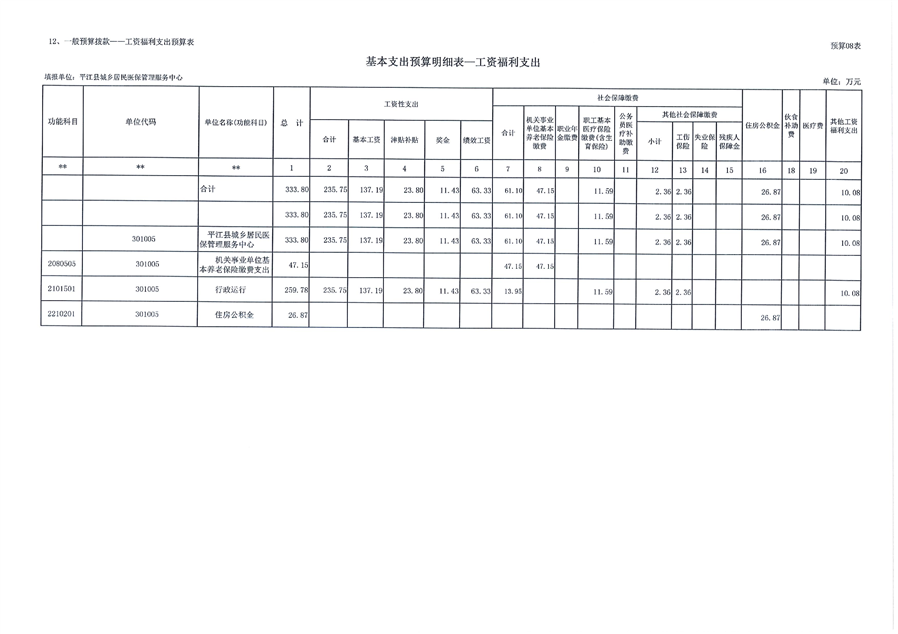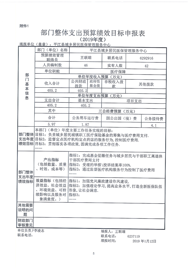 平江县城乡居民医保管理服务中心2019年度部门预算编报说明
