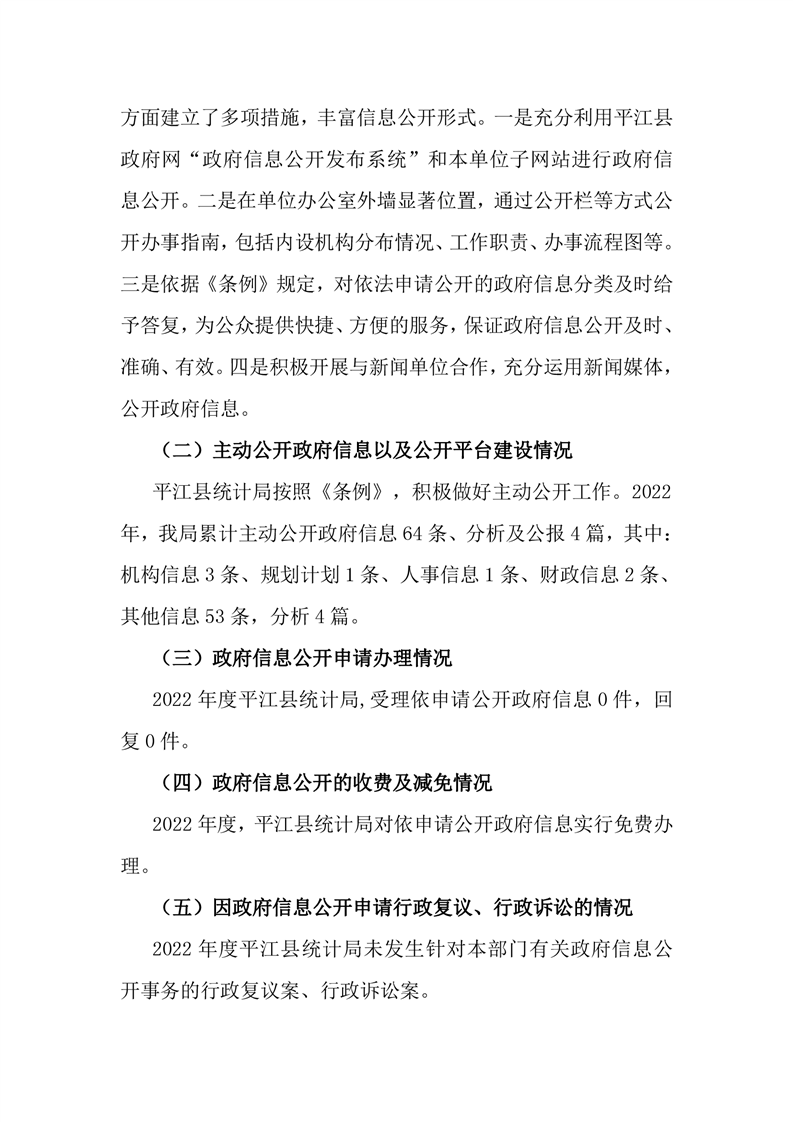 平江县统计局2022年政府信息公开年度报告