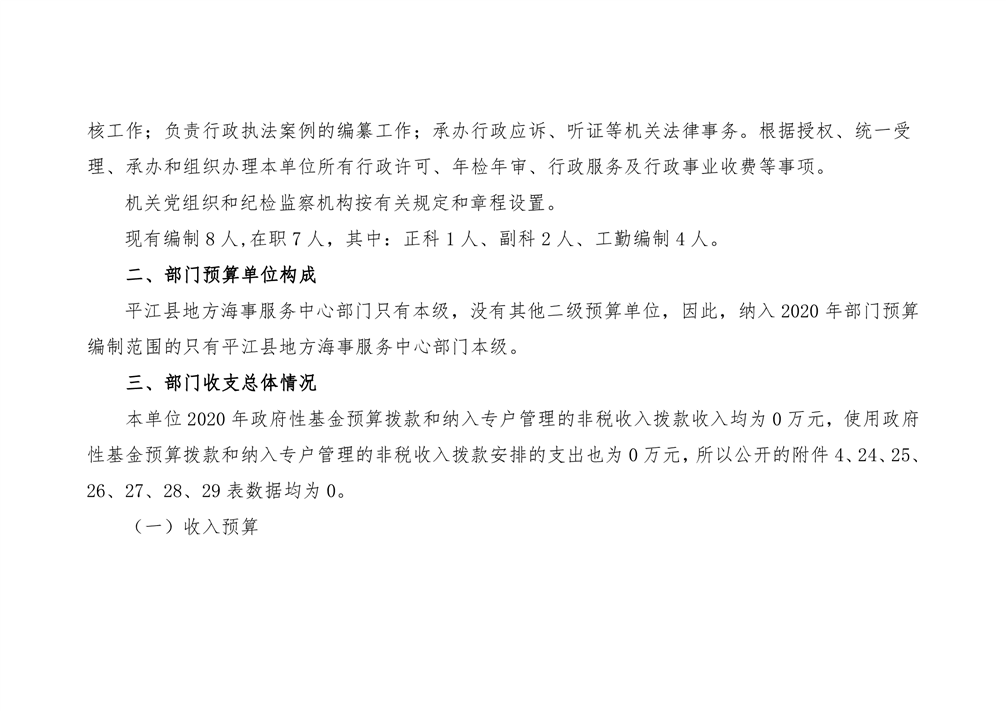 平江县地方海事服务中心2020年度部门预算编报说明