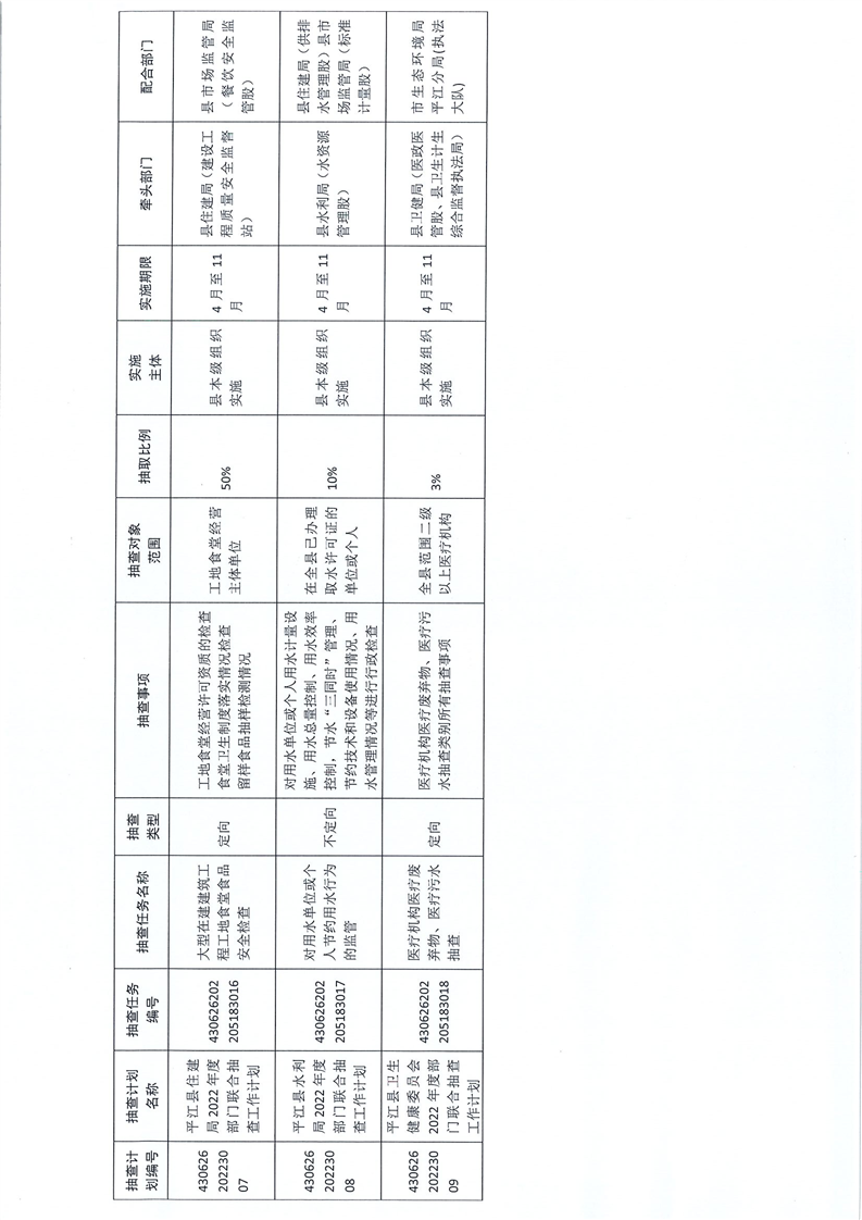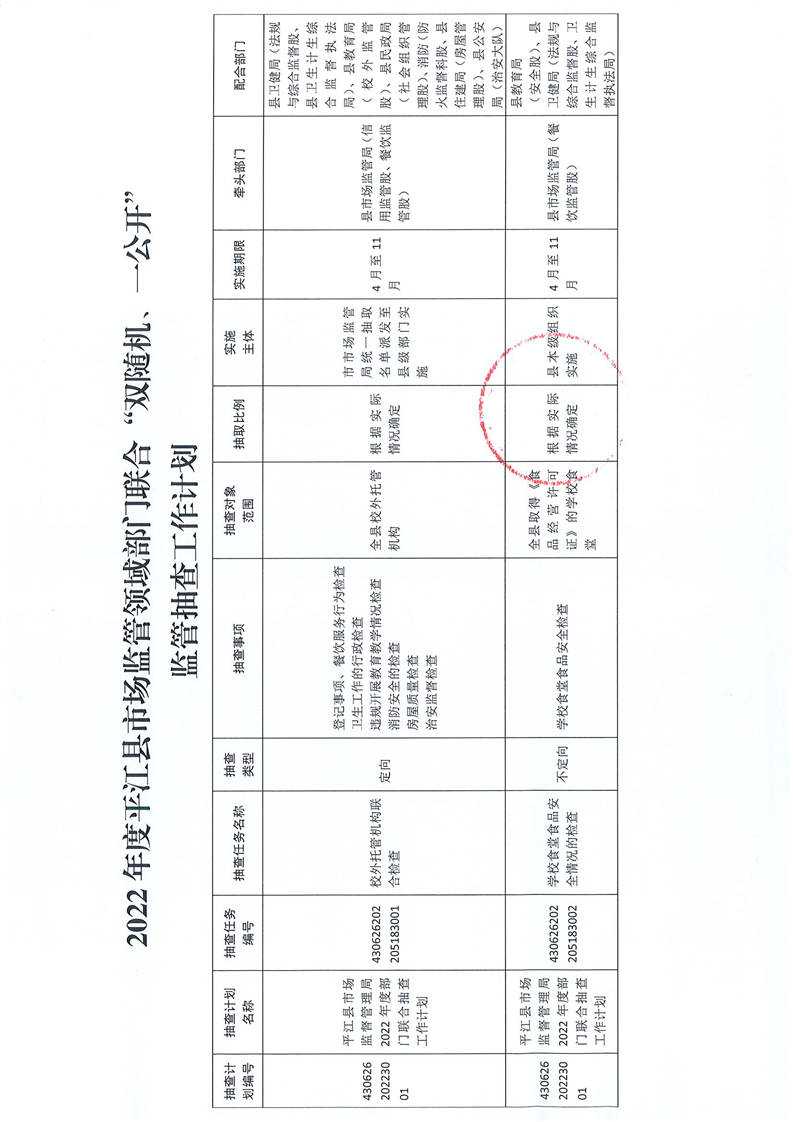 关于印发《2022年度平江县市场监管领域县级部门联合“双随机、一公开”监管抽查工作计划》的通知