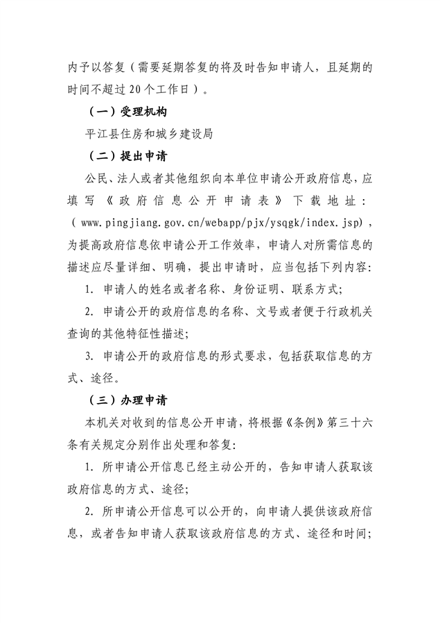 平江县住房和城乡建设局政府信息公开指南(2023)